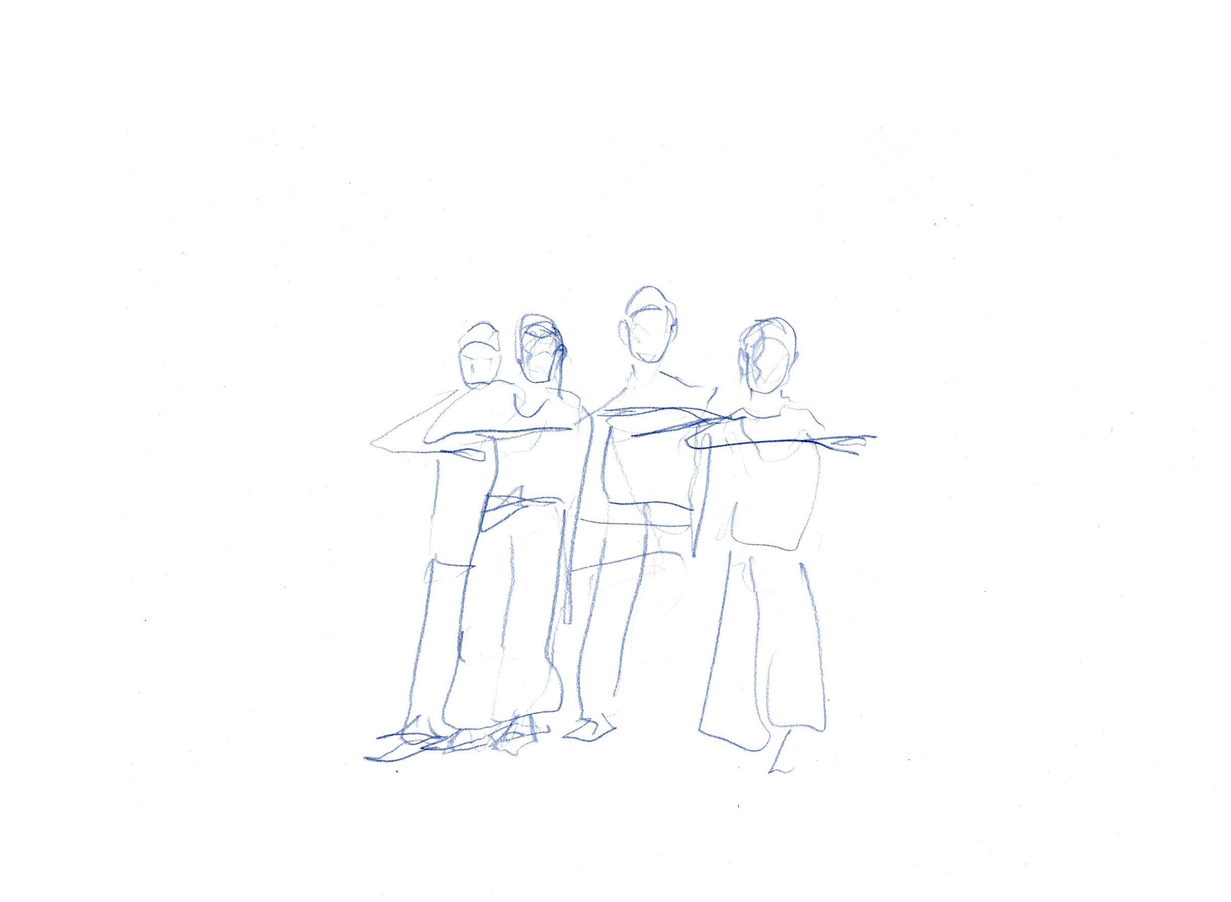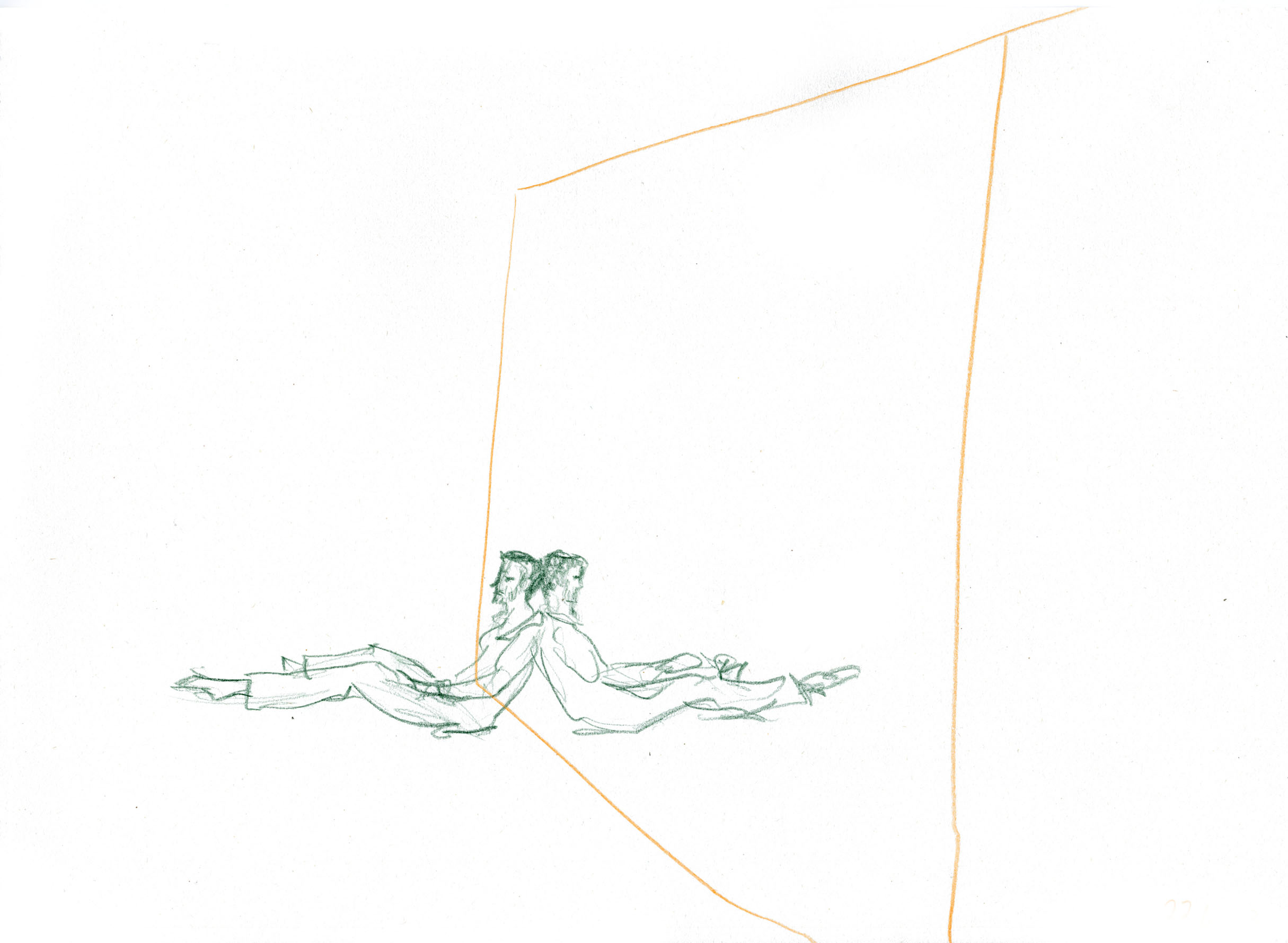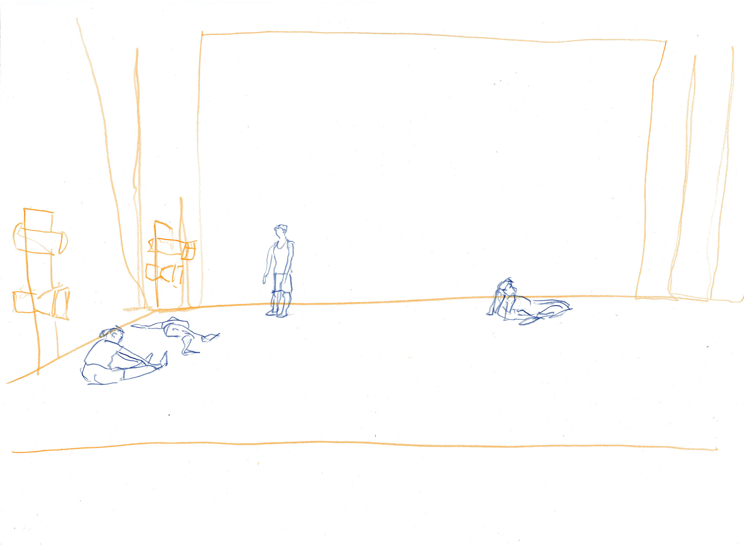 This documentary drawing project is the result of a collaboration with Jakub Truszkowski's dance class at the Folkwang Campus in Essen-Werden. I regularly accompanied the class with drawings during rehearsals for a performance. Week after week I was able to observe and capture developments in the choreography and situations between the students. All drawings were made during the rehearsals.