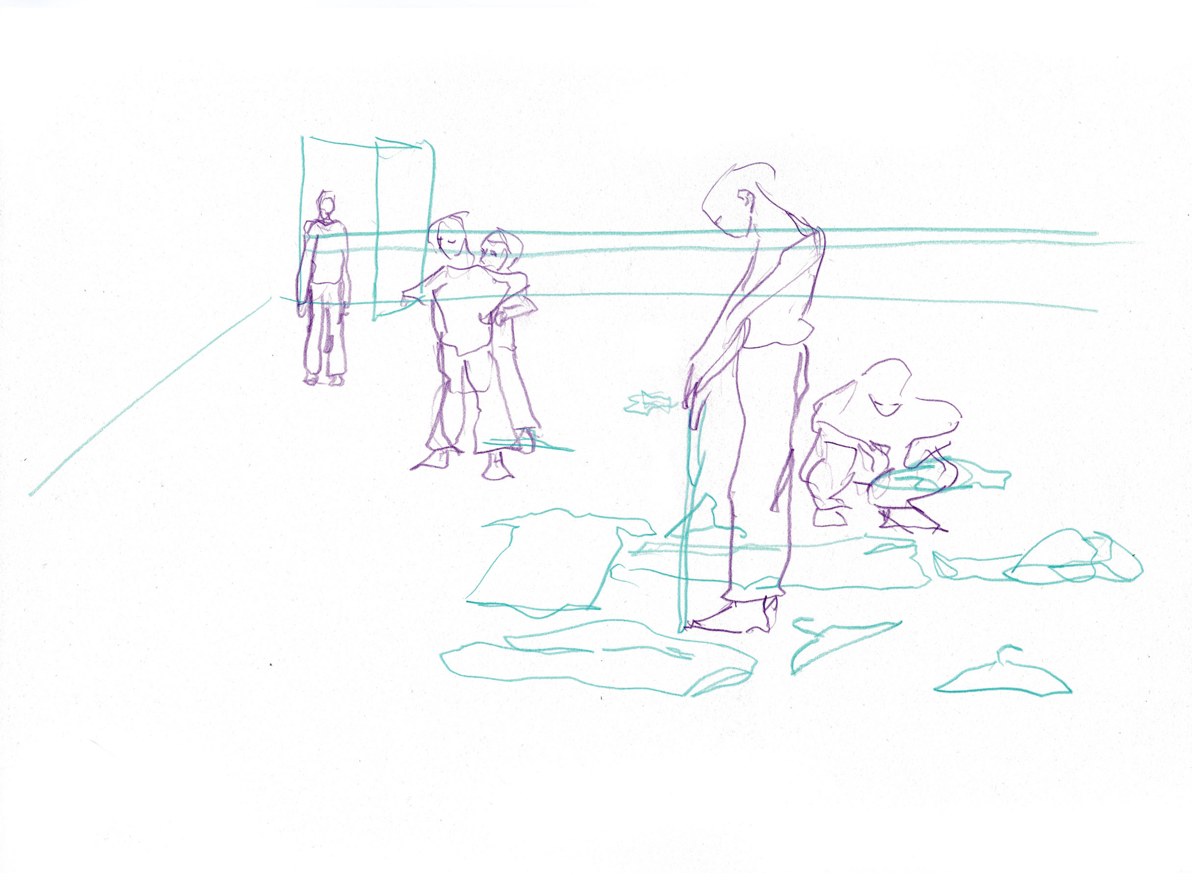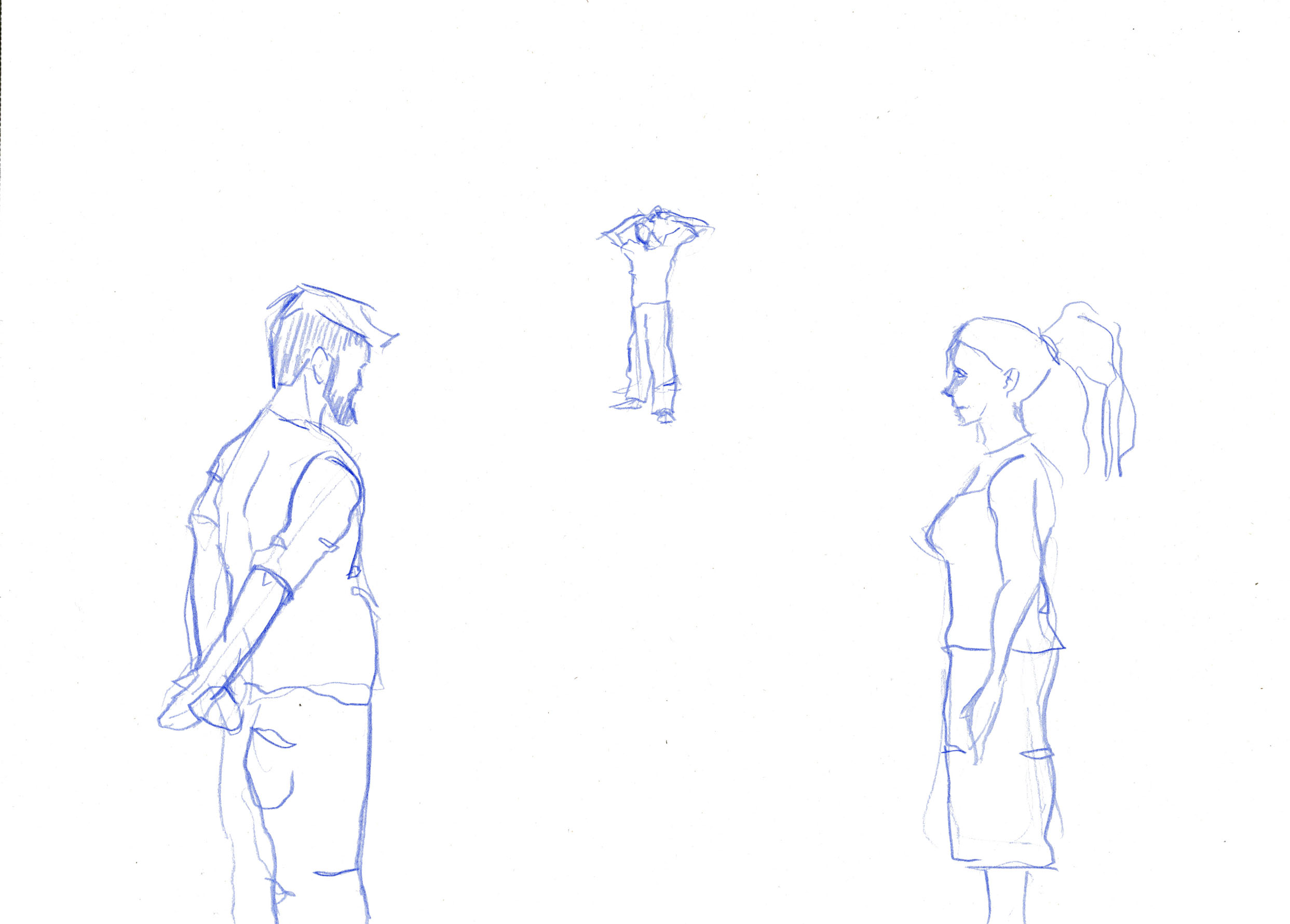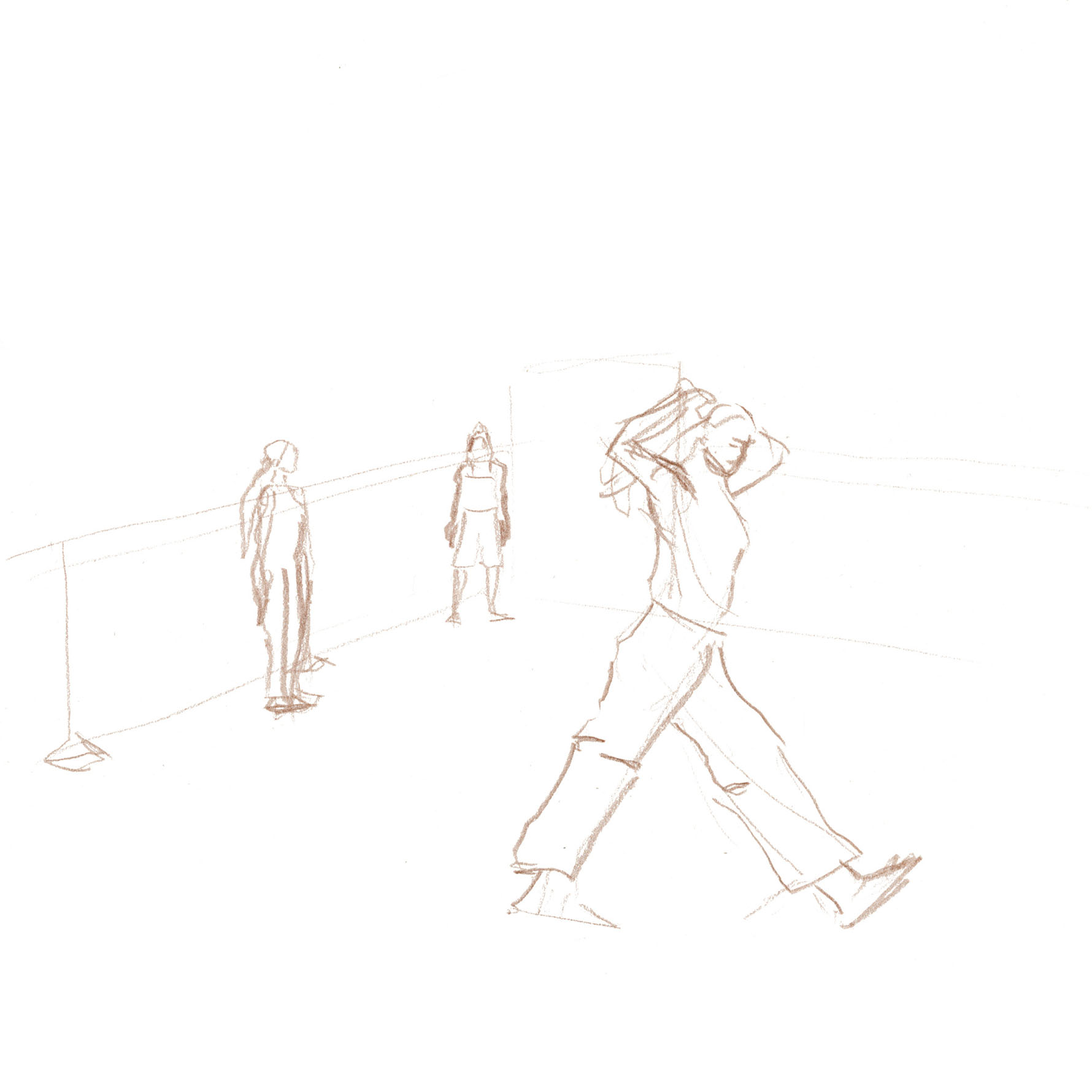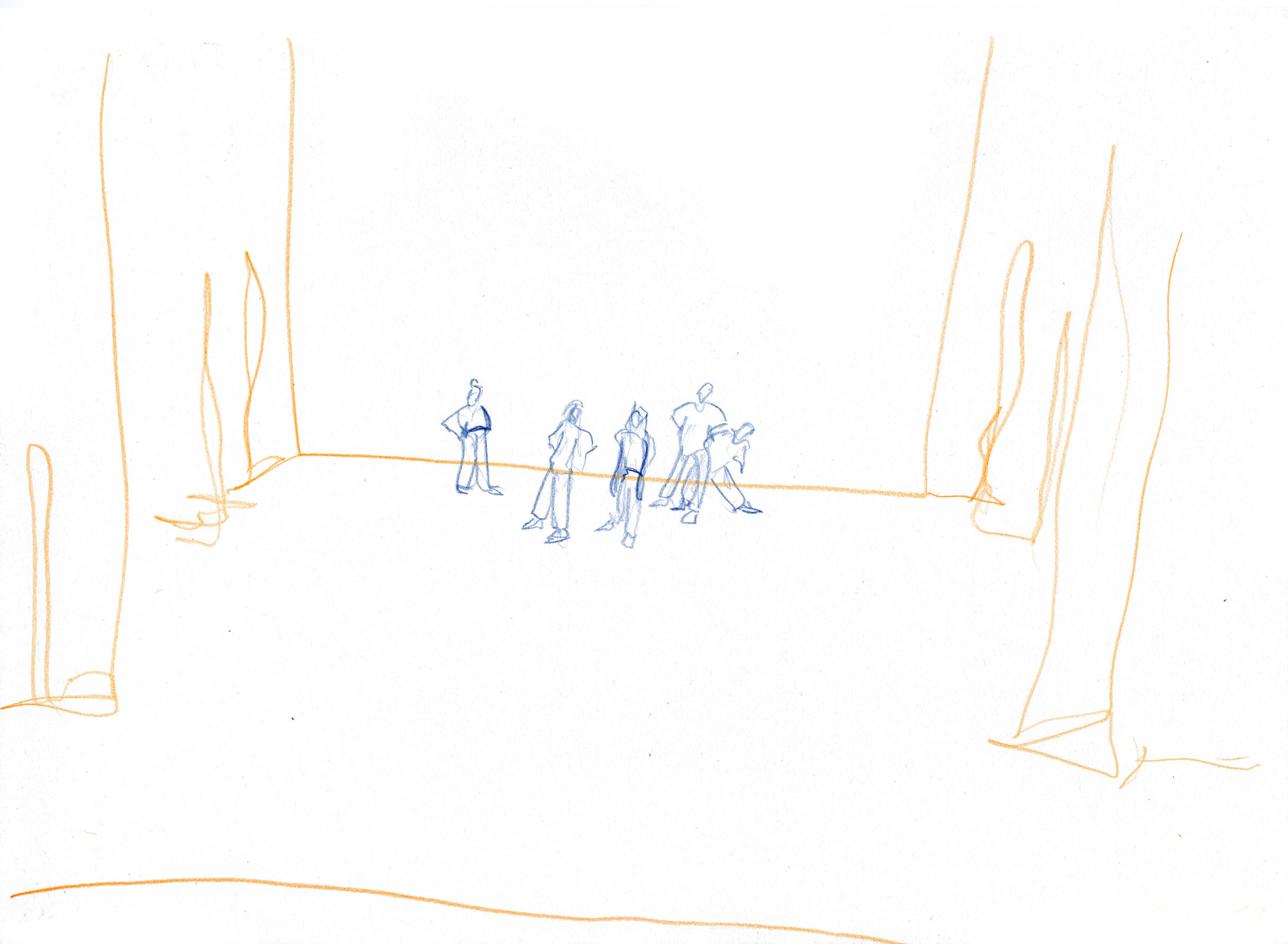 This documentary drawing project is the result of a collaboration with Jakub Truszkowski's dance class at the Folkwang Campus in Essen-Werden. I regularly accompanied the class with drawings during rehearsals for a performance. Week after week I was able to observe and capture developments in the choreography and situations between the students. All drawings were made during the rehearsals.