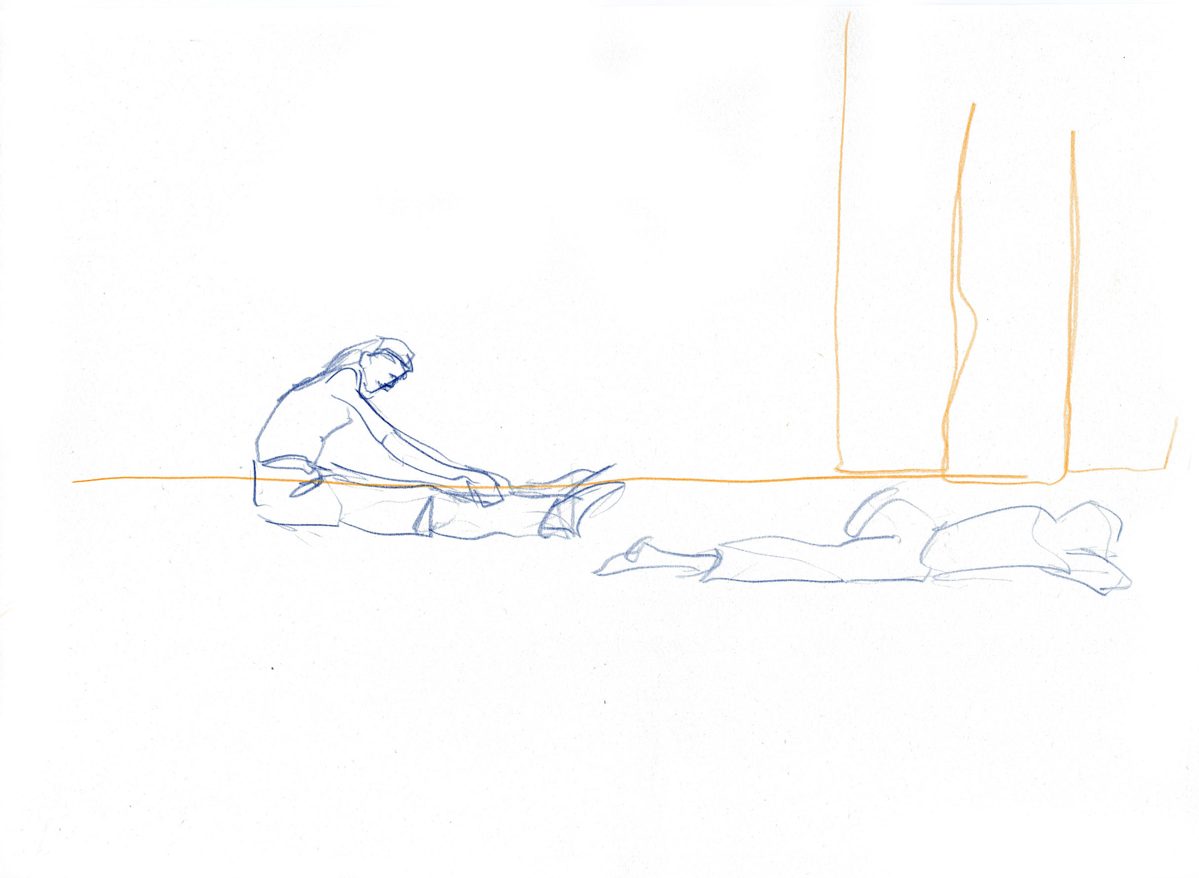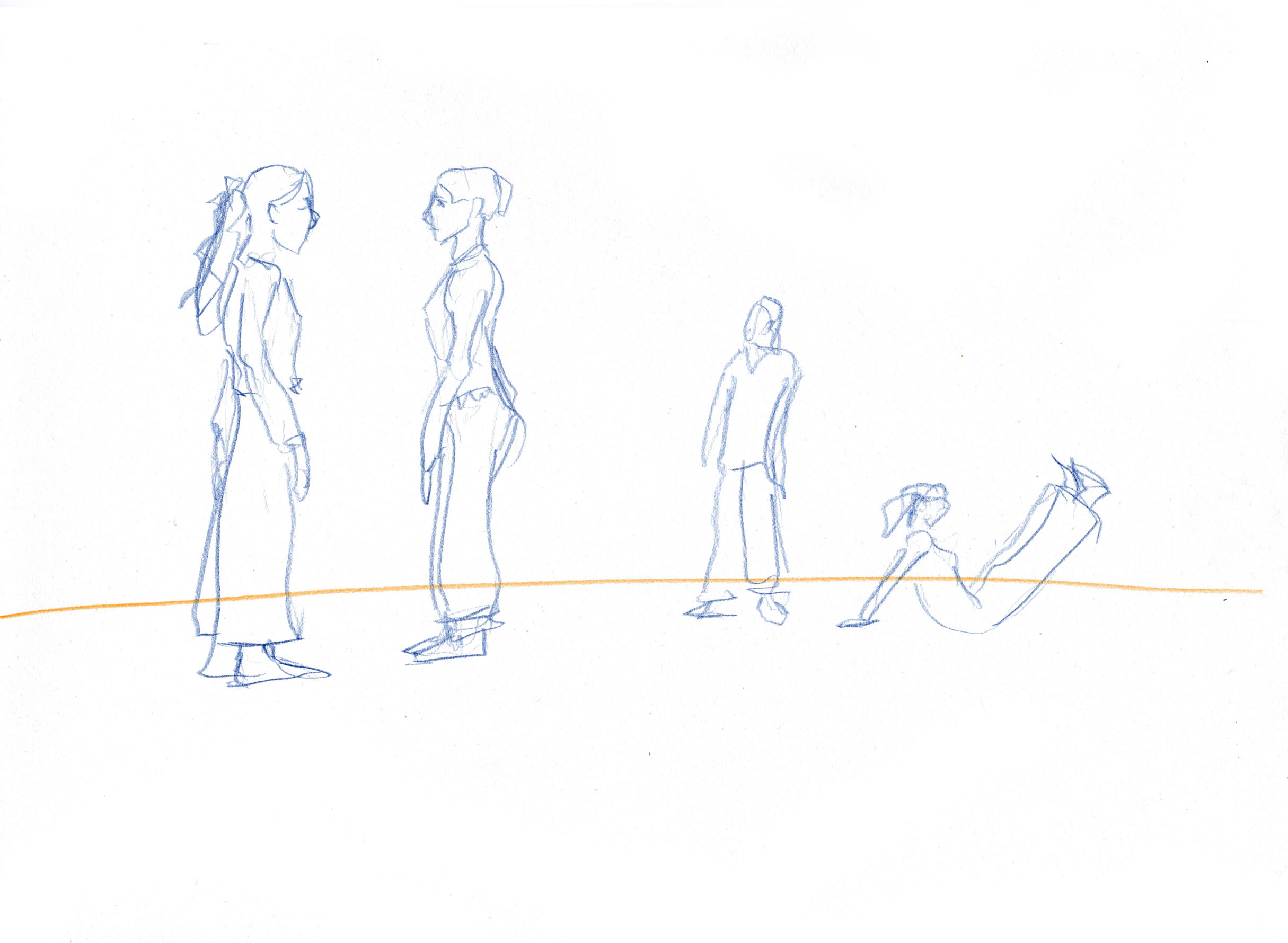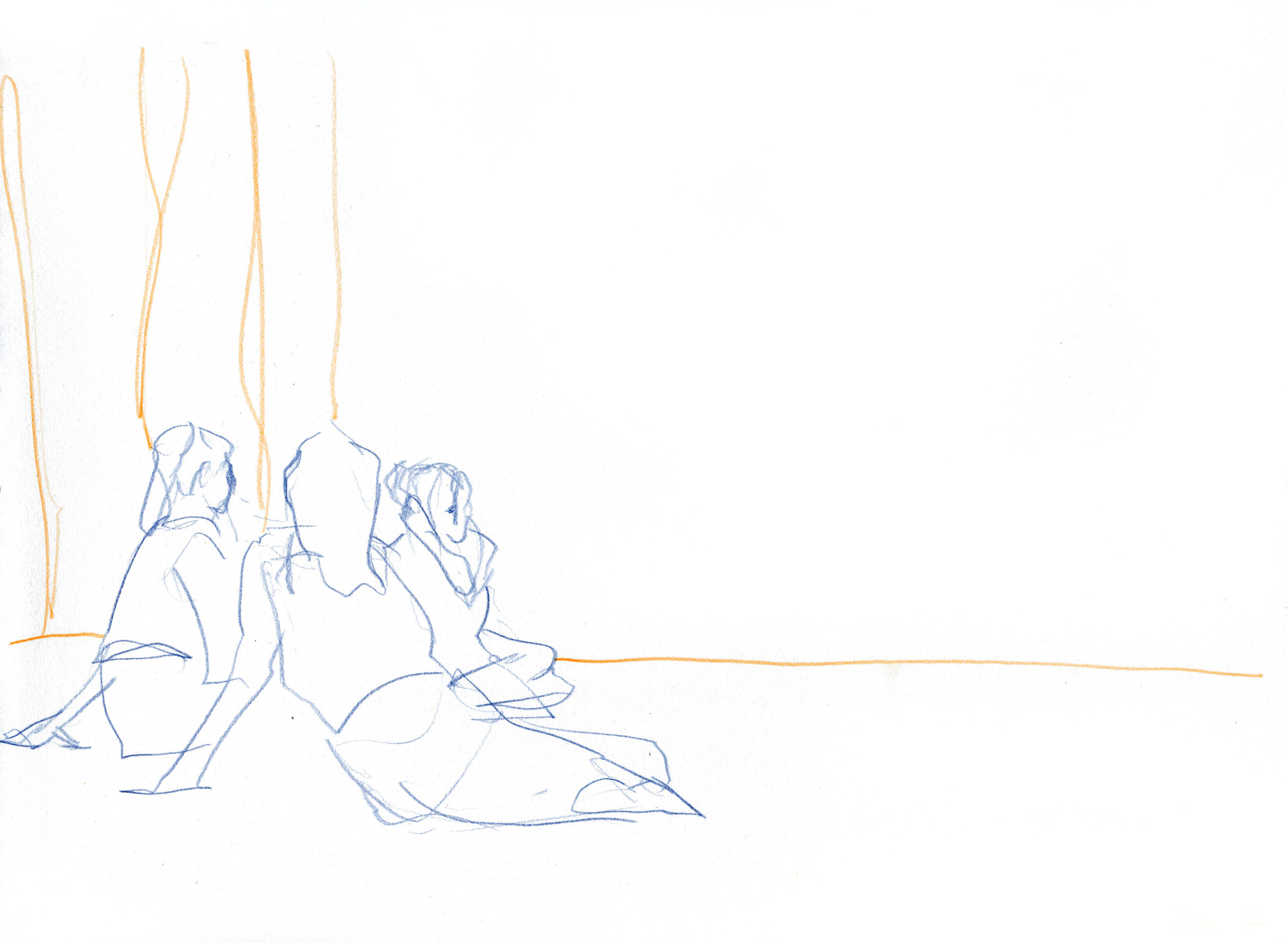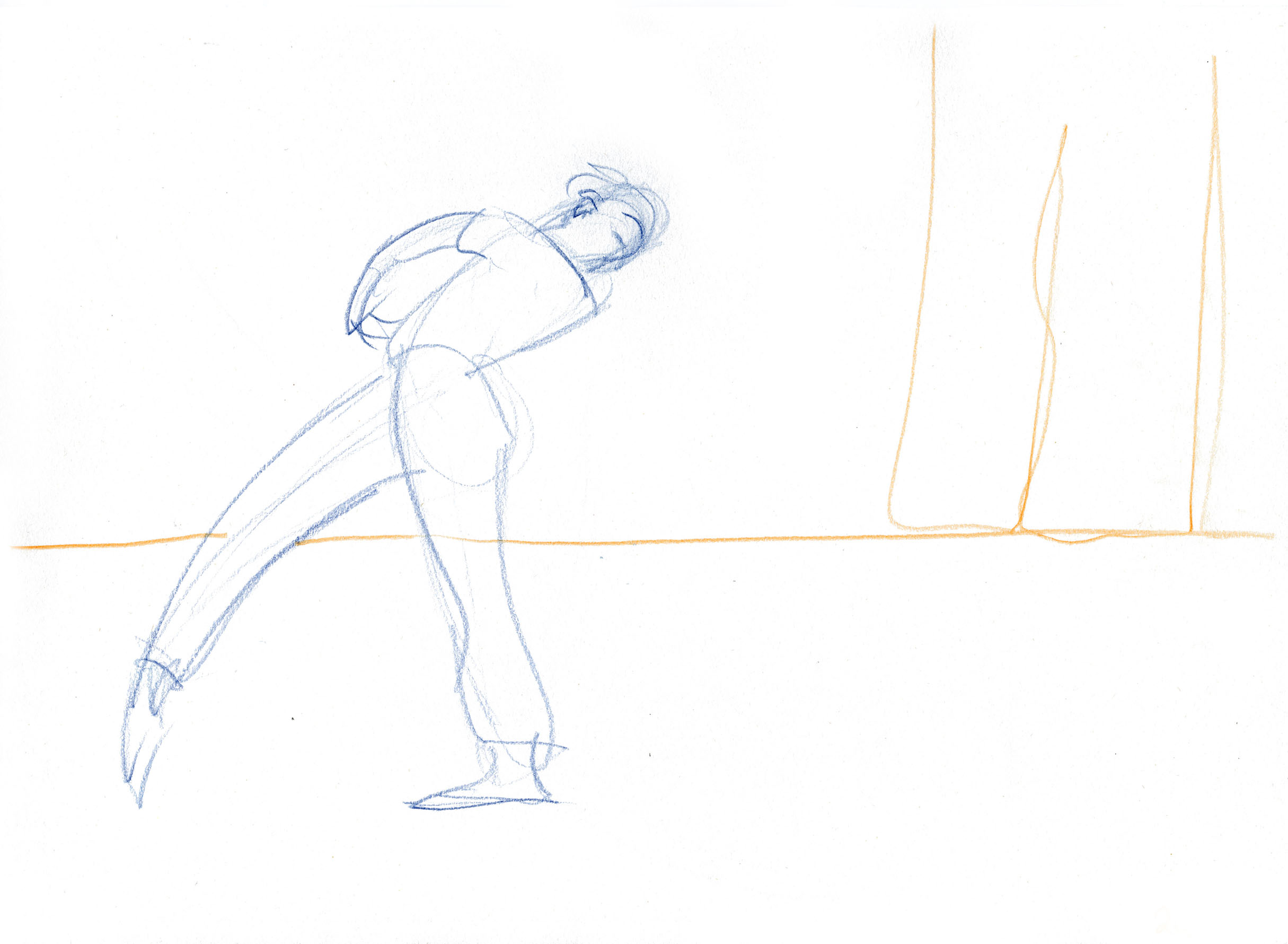 This documentary drawing project is the result of a collaboration with Jakub Truszkowski's dance class at the Folkwang Campus in Essen-Werden. I regularly accompanied the class with drawings during rehearsals for a performance. Week after week I was able to observe and capture developments in the choreography and situations between the students. All drawings were made during the rehearsals.